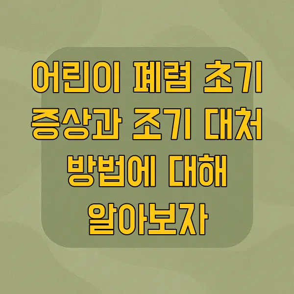 오늘은 어린이 폐렴 초기 증상 과 부모님들이 가정에서 할 수 있는 조기 대처 방법 에 대해 이야기해보려 합니다. 폐렴 은 초기에 발견하여 적절히 대처하면 심각한 상황을 예방 할 수 있습니다.